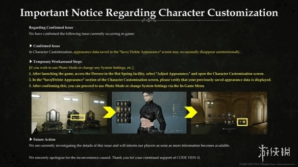 在《噬血代码2》里,如果测试版创建的自定义角色外观在正式版中不见了,可以试试检查玛格梅尔研究所温泉区附近的梳妆台,或者确认主机平台使用的用户档案和创建角色时是同一个,以此来尝试恢复外观。