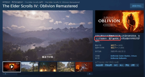 另一方面,英文原名和官方翻译也可能出现不匹配的情况,比方说虽然《上古卷轴4:湮灭重制版》的后缀为Remastered,按照英文原意应该算作“复刻版”,但Steam页面的官方翻译确实将其称呼为“重制版”。