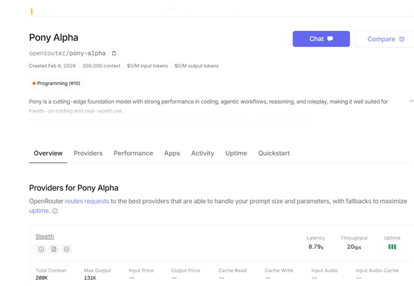 前几日,全球模型服务平台OpenRouter推出了一款代号为“Pony Alpha”的匿名模型,该模型凭借出色的表现引发了全球范围内的关注,特别是在代码编写领域,其能力被认为可与Claude Opus相媲美。