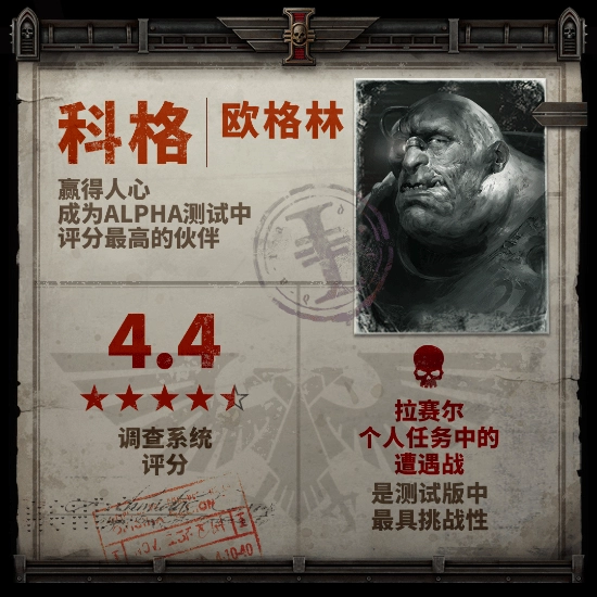 数据显示,这位被遗弃的大块头被评为“最有价值队友”。原因很简单,在战锤的世界里,脑子越小,身体越硬。他不仅能当肉盾抗线,还能把敌人锤成肉泥。正如玩家所说:“只要科格站在前面,我就有安全感。”
