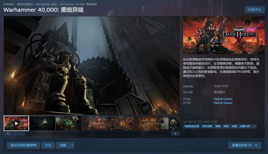 据外媒playground消息,Owlcat Games在完成《行商浪人》的开发工作后,紧接着便推出了风格更为黑暗、充满悬疑氛围的新作《战锤40K:黑暗异端》。