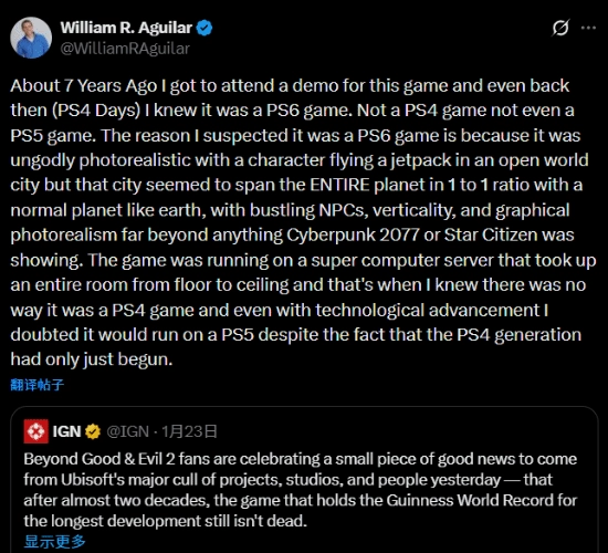 “大约 7 年前,我曾有机会观看过这款游戏的一次演示。即便在当时(还是 PS4 时代),我就已经意识到:这是一款 PS6 级别的游戏,不是 PS4 的,甚至连 PS5 都不是。