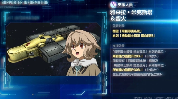 UR「天狼王型猎魔钢弹(EX)」/UR「三日月‧奥古斯」、UR「风灵钢弹(修改型)(EX)」/UR「苏莱塔‧墨丘利」等阵容于精选机体补给中登场