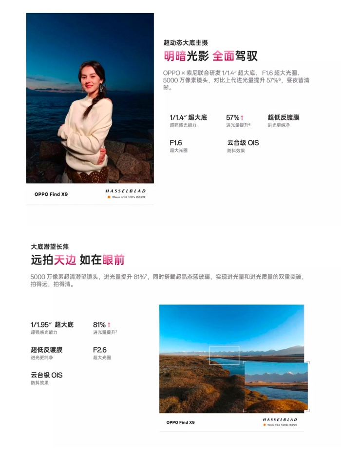 新年之际,自然少不了用影像记录与家人团聚的珍贵瞬间。OPPO Find X9 主摄采用索尼 LYT-808 传感器,配备 1/1.4 英寸大底与 f/1.6 超大光圈,进光量相比上一代提升 57%,并支持四轴 OIS 光学防抖,即使在夜晚或复杂光线环境下,也能稳定捕捉清晰画面。长焦端则搭载索尼 LYT-600 潜望式镜头,支持 3 倍光学变焦以及最高 120 倍数码变焦,无论是全家合影还是人像特写,都能轻松应对。