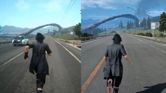 Cynical 分享的对比素材里,左边是2015年PS4平台《最终幻想15:Episode Duscae》试玩版的画面,诺克提斯的黑色长发在奔跑时有着自然的飘动与垂坠效果;右边则是PC平台的最终正式版,相同的奔跑场景中,他的头发却显得生硬,物理动态明显减弱。这样的对比让许多玩家直言“这真是场悲剧”,纷纷抱怨SE“删减”了角色的标志性细节。