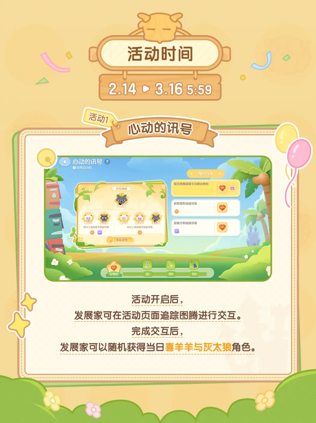 《心动小镇》于今日(2026年2月11日)官宣将与《喜羊羊与灰太狼》展开联动,联动活动即将上线!活动时间为2月14日至3月15日。喜羊羊与灰太狼新年联动即将开启,羊羊和狼狼在青青草原等你一同开启营救大作战~接下来,北仑小编将为大家带来心动小镇x喜羊羊与灰太狼联动的相关内容,感兴趣的玩家可以来了解一下哦。