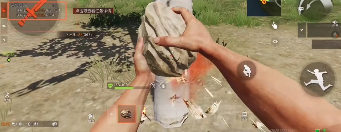 2、随后打开地图挑选合适的位置建设基地,这里就需要去收集石头来作为建设基地的材料