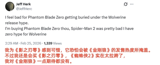 当然,也有部分玩家担忧《影之刃零》作为全新IP,可能会被《漫威金刚狼》强大IP的影响力所淹没。金刚狼拥有多年积累的全球粉丝基础,加以索尼强大的发行渠道与宣发实力,而《影之刃零》作为国产新IP,即便在海外已积累一定关注度,仍难以与这种老牌超级英雄IP抗衡。尽管如此,依然有不少玩家对《影之刃零》保持着更高的期待。