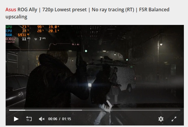 ROG Ally在720P最低预设画质下只能跑11帧,而且是开启了FSR平衡