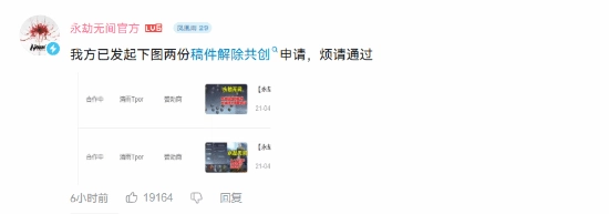 对此,《永劫无间》官方账号于今日果断回应,在公开渠道直接喊话该主播:“我方已发起下图两份稿件解除共创申请,烦请通过。”