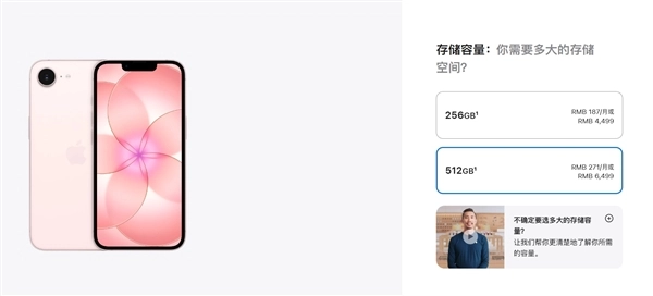 此次新品发布延续了以往的模式,直接在官网推出并开启销售。作为iPhone 16e的升级机型,iPhone 17e首次引入MagSafe磁吸充电功能,同时配备A19芯片和256GB的起始存储容量,保留了经典的单摄像头与刘海屏设计。其中,256GB版本定价4499元,512GB版本定价6499元。