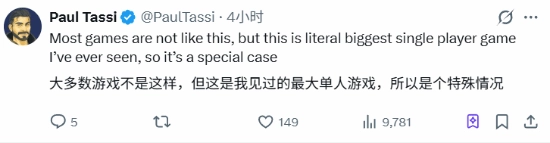 他感叹道:“大多数游戏都不是这样的(指不通关就给出评测),但这真的是我见过的体量最大的单人游戏,它是一个特例。”