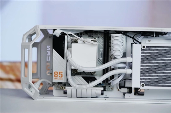 电源选用酷冷至尊VSFX Gold850 ATX3.1白色版本,850W金牌全模组规格,能为整机的旗舰级硬件提供稳定且高效的供电保障,而全套白色系硬件的搭配,更让整机的视觉风格实现了高度统一。