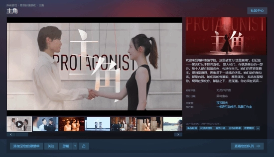 由顶顶阳光打造的真人互动影游《主角》已在Steam商店页面上线,提供Demo试玩版本,具体上线时间尚未对外公布。