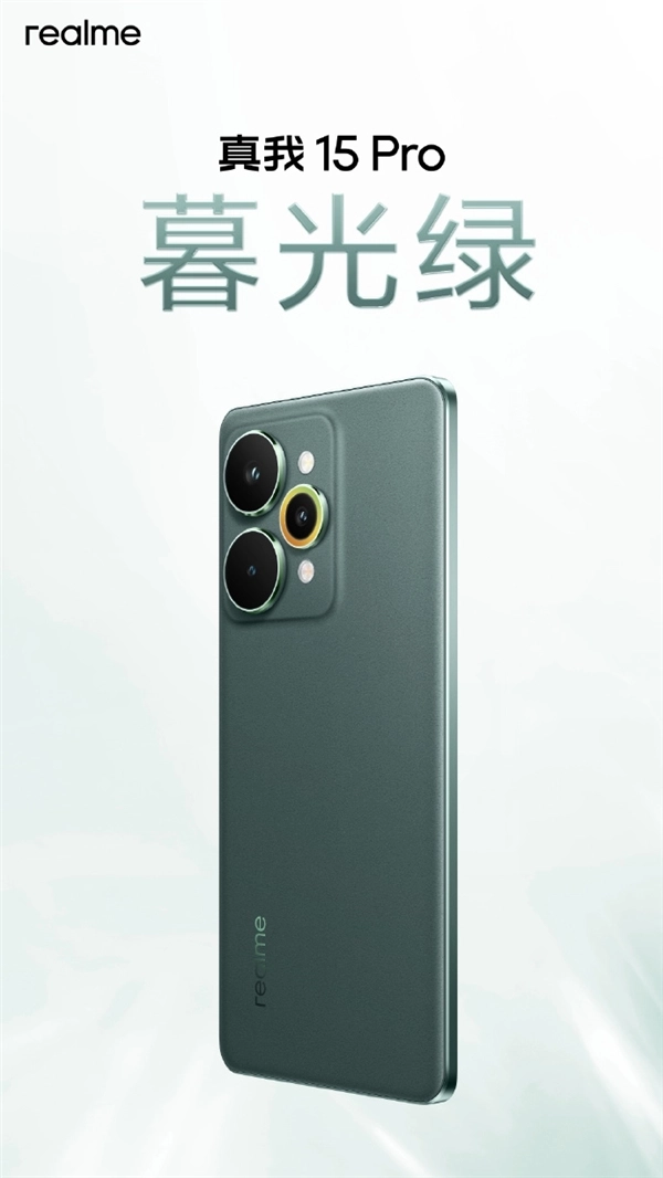 近日,真我手机公布真我15 Pro的外观设计,展示流光白和暮光绿两款配色。
