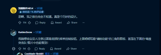 该发现也引发不少玩家共鸣。有网友表示:“我昨天才发现,还好不止我一个人不知道。”也有人称赞这是个“很贴心的设计”。当然,也有玩家表示,其实屏幕底部早就提示了“按三角键查看辅助功能”,只是很多人压根没注意。