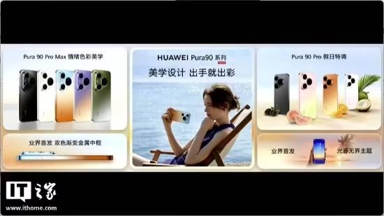 注意到,外观方面,Pura 90 Pro Max 采用了情绪色彩美学设计,全系采用利落直屏设计,业界首发双色渐变金属中框、业界首发光感无界主题,提供橘子海、翡翠湖、霞光紫、晨曦金、曜石黑五款配色,华为 Pura90 Pro 则提供粉红芭乐、橘子汽水、椰青白、桑果黑四款配色。Pura90 Pro 和 Pro Max 分别配备 6.6 英寸和 6.9 英寸屏幕,并采用单挖孔设计。