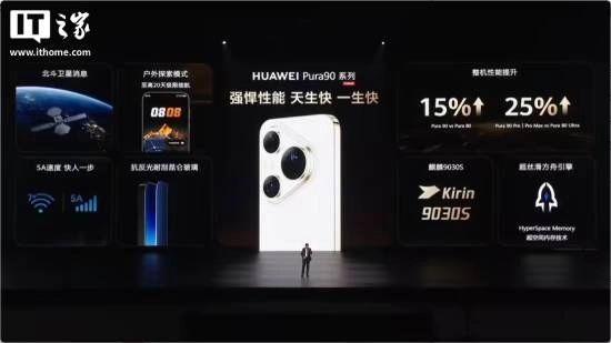 华为 Pura90 Pro | Pro Max 搭载了麒麟 9030S 芯片,软硬芯云垂直整合,整机性能提升 25%;支持超空间内存技术,12G 的内存 16G 的保活体验。