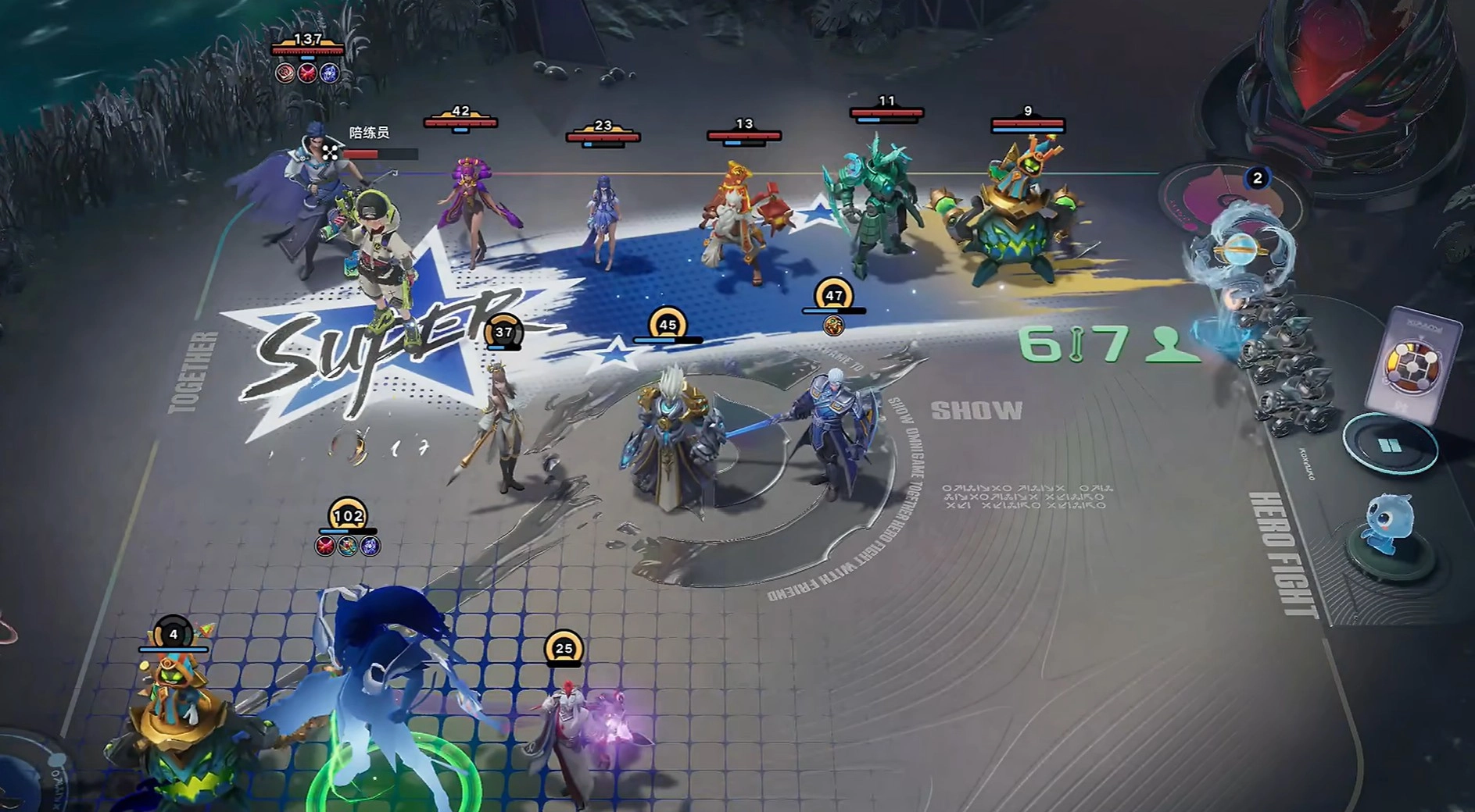 4到7回合重点把关键英雄凑齐,主要英雄有李信、明世隐、上官婉儿等,第二次拍卖优先选花木兰或上官婉儿,如果这时候李信还没升到满级,就先拍下李信,在9回合左右把自己的等级升到5级,再补上太乙,多一些活下去的机会。10到11回合重点让李信、明世隐升到满级,这期间有明世隐和古币牌的帮助,李信的等级会涨得很快,在游戏里压制对手的能力也会慢慢体现出来。