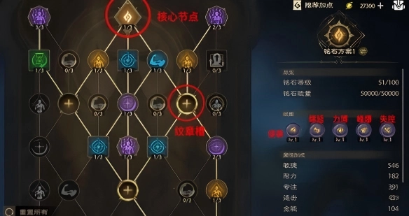 2、后期优先点满核心节点,然后按照下面属性优先级升级。
