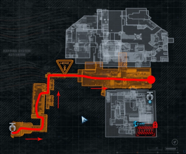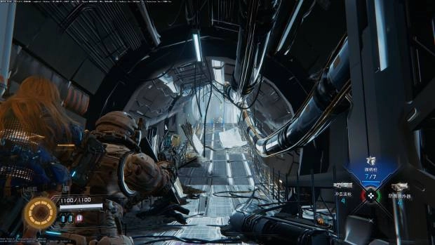 由于《识质存在》并未内置基准测试工具,因此测试在游戏中进行。地点为序章中的“制造阵列入口”,从图示的摇篮机手动跑图至封锁区入口,途中会引发NPC战斗,但我们直接无视并继续跑图。需要注意的是,由于游戏依然使用了经典的RE引擎,因此在室内以及室外的帧数表现有极大区别,而我们的测试路线前半程位于室内,后半程位于室外,一定程度上具有代表性。