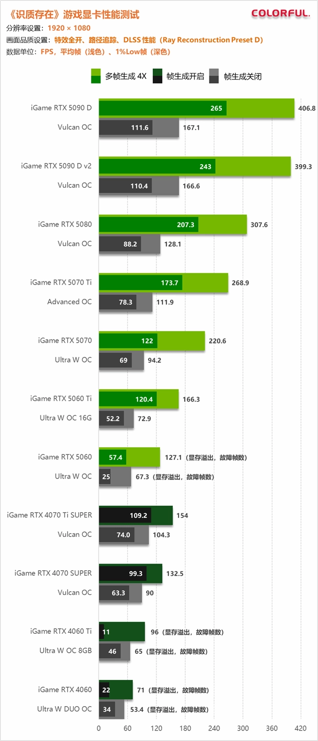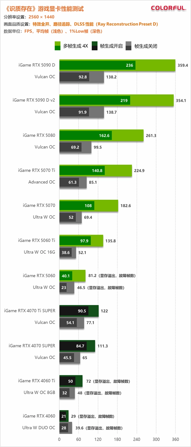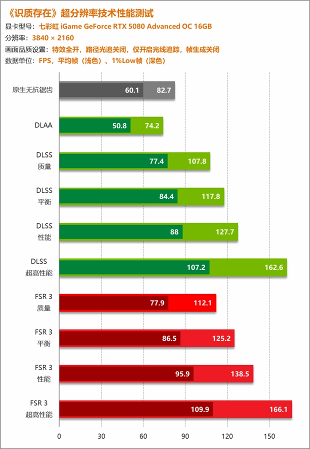 同时我们也可以预见,传统的那种原生分辨率关闭帧生成流畅游玩的思路已经从新游戏中基本消失了,不仅是开发者,普通玩家都需要依赖超分以及帧生成技术才能够流畅游戏,显卡的竞争将不再局限于核心规模与频率提升,而是逐步转向游戏适配、图形技术、显卡本身性能的全面比拼,而《识质存在》正是一个非常典型的样本。