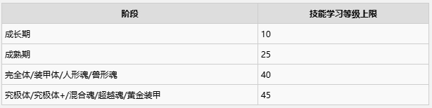 下表为各阶段停止学习新装备技能的等级临界点。通过不同分支进化可获得多样化辅助技能与属性覆盖。
