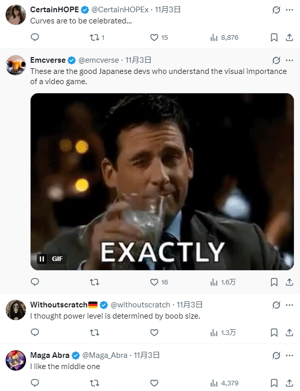 许多老外对莉夏·毛一见钟情,“告诉我她的名字以及游戏名,然后我掏钱买!”。还有人表示:“她还处在发育期,所以越来越丰满也正常”“优秀的日本开发者知道玩家想要什么!”“Falcom并不关心正确人士会怎么看,只想让玩家满意。”