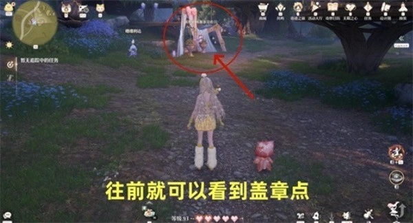 传送至【心愿研究所】锚点后,沿路径直行即可到达盖章点所在位置。