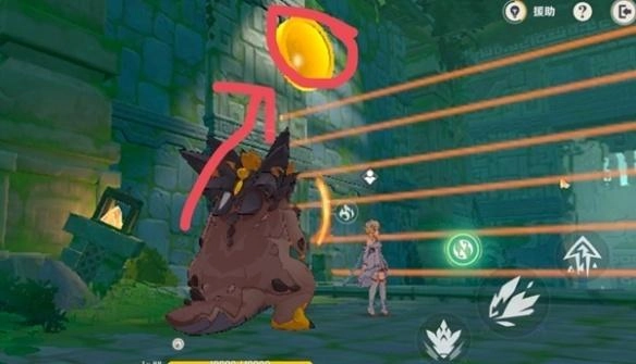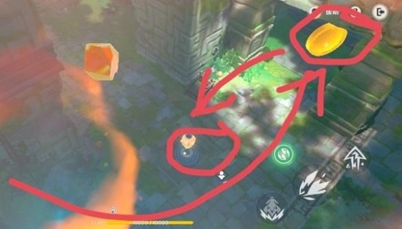 3、绕过激光后,下来拿第二个金币,攻击橙色按钮。