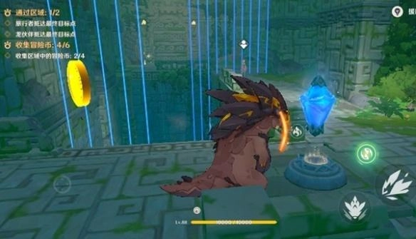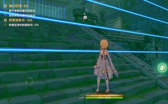 12、切换旅行者,拿第四个金币,走到蓝色激光前。
