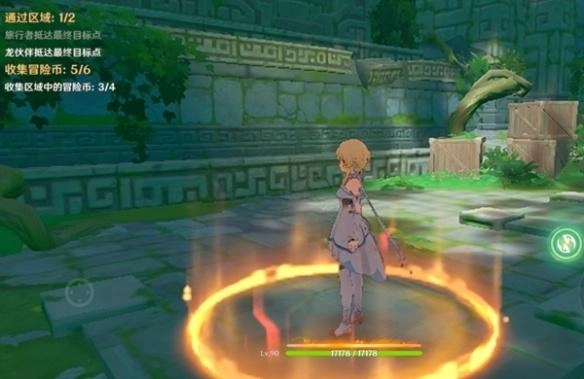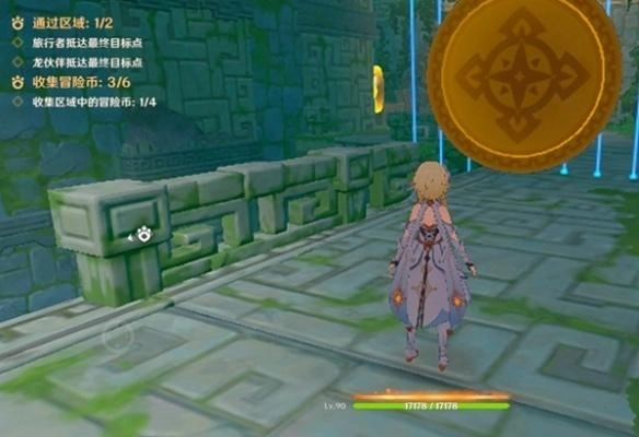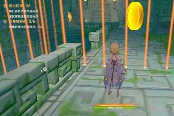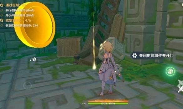 14、切换旅行者,关闭射线组件并开门,拿旁边的第五个金币。