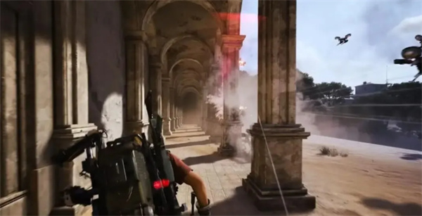 这是一种侦察型ARC,一旦你进入其扫描范围,激光便会立刻锁定你。虽然它本身不攻击,但若不迅速击杀,它会呼叫空中支援(两只黄蜂+一只大黄蜂),瞬间让战局陷入混乱。最快解决方式是射击其腹部装甲板——通常击碎三块中的两块即可将其击落。
