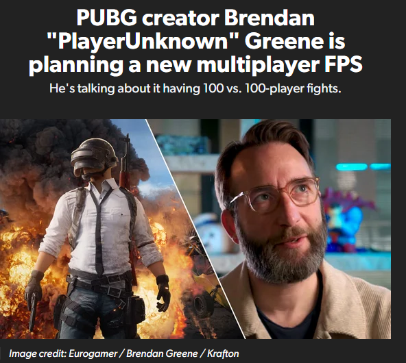 《绝地求生》这款吃鸡神作的生父Brendan Greene,日前在接受媒体采访时,透露了自己近期的计划,称正在计划打造一款100VS100大规模的FPS新游。