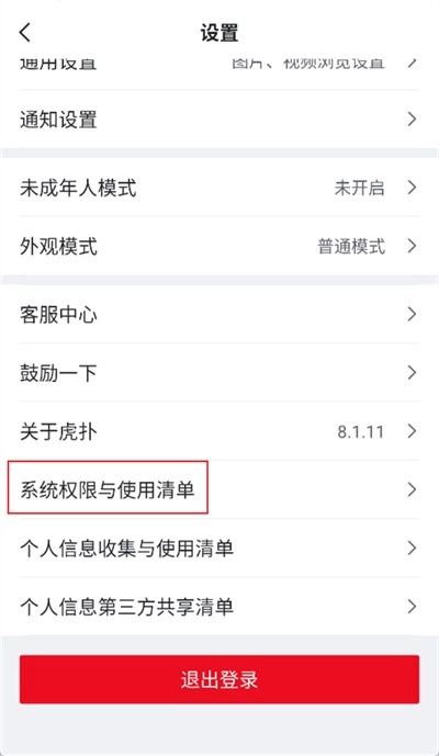 5、之后再返回设置功能界面,点击【系统权限与使用清单】选项;