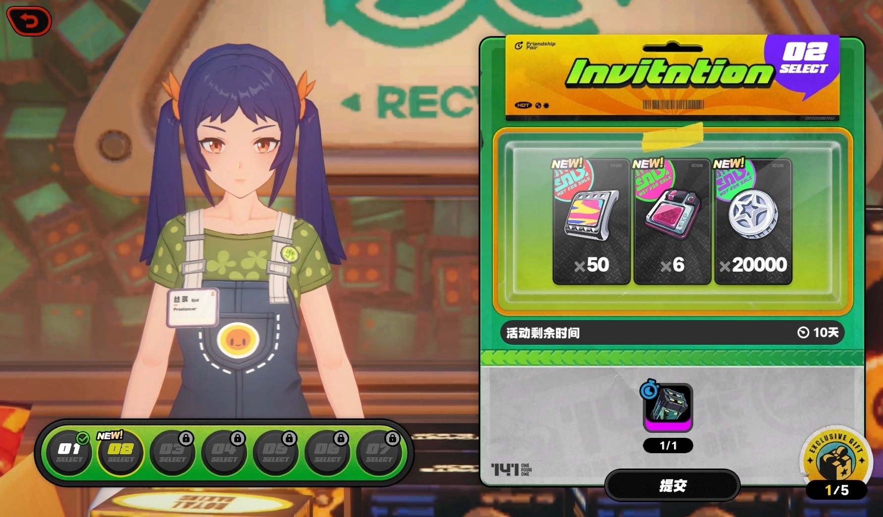 拥有了废弃电池后,玩家们可去找丝琪进行对话,进入兑换界面完成废弃电池的兑换,每成功提交一次废弃电池,都能领取一次奖励,最多能提交七颗领七次奖励。当玩家们上交的废弃电池达到五颗时,还可领取最终的大奖。活动所给的奖励也格外的丰厚,不光有能兑换母带的菲林,还有各种养成材料,以及可抽取邦布卷,并且这些只需要动一动手就能全拿到,完成起来格外的轻松。