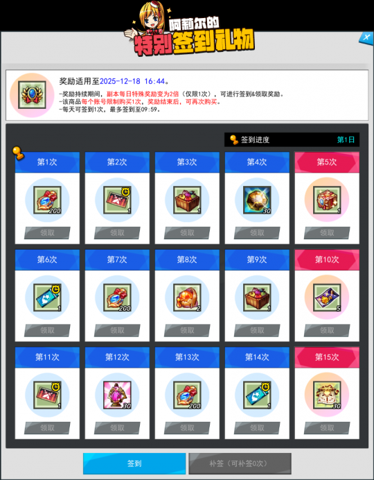 “阿莉尔的特别签到礼物”同步上线,通过该道具可以获得隐藏副本徽记,令副本的通关经验值获得量和超适应力增加,并且可开启签到活动,各种药水、时空卷轴等等多种奖励等你领取,绝对值得拥有哦!