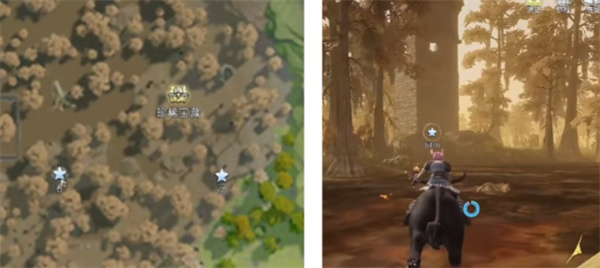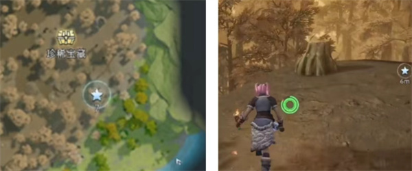 树林中埋着挖宝点,使用铲子挖掘即可获得宝箱