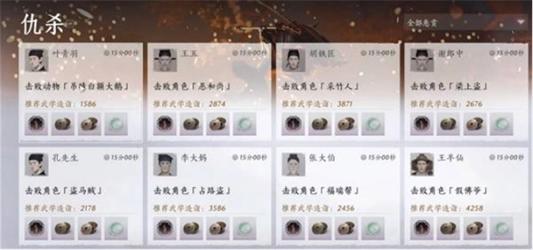 3、悬赏任务(23级解锁):仇杀奖励么玉750/个、四方赏150/个,每日限量