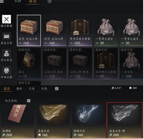 3、不肝商城兑换:各类材料、货币、心法心得、武学心得、奇术突破支援箱等