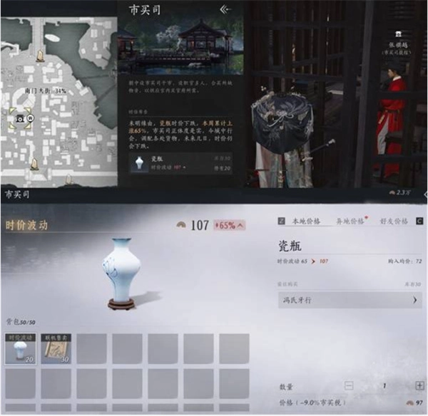 7、市买司倒买倒卖:低价购入,高价卖出,每周日货物刷新