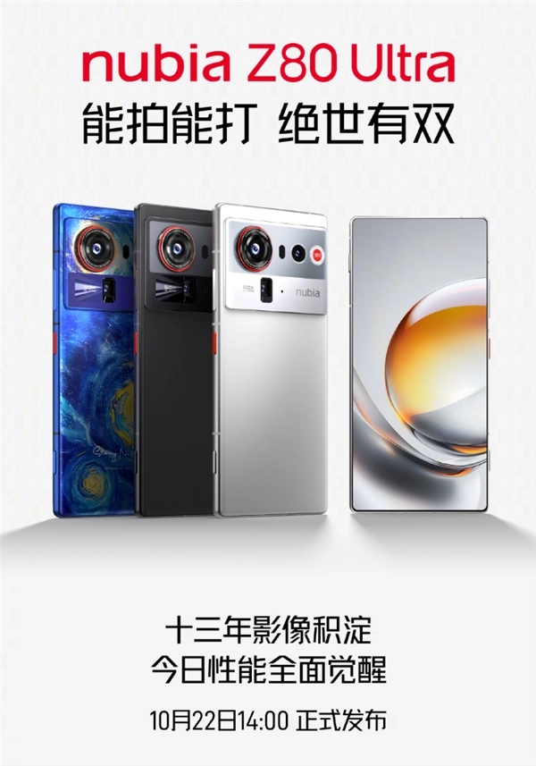 更多产品细节信息,还有待努比亚官方陆续公布。不过目前来看,努比亚这次诚意满满,努比亚Z80 Ultra更是有备而来,影像、游戏双剑合璧,外观、系统也全都很顶。期待10月22日努比亚Z80 Ultra震撼登场,让我们一睹全能旗舰机该有的样子!