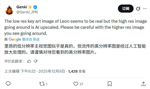 随后,《生化危机9:安魂曲》制作人熊泽雅人表示,近期网络上关于里昂出现在游戏中的泄露“均为假消息”。