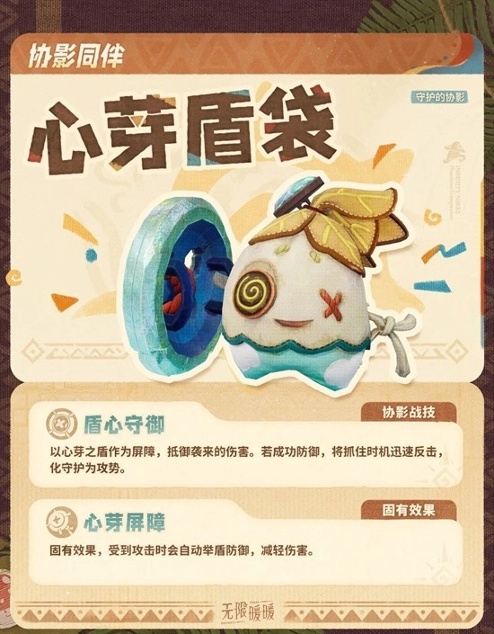 以心芽之盾作为屏障,抵御袭来的伤害。若成功防御,将抓住时机迅速反击化守护为攻势
