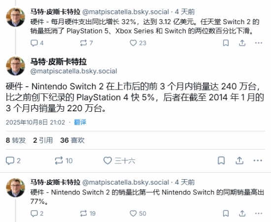 IGN报道指出,Circana分析师Mat Piscatella表示,Switch 2在7月的强势表现带动美国游戏硬件支出达到3.84亿美元,创下自2008年以来7月份的最高纪录。
