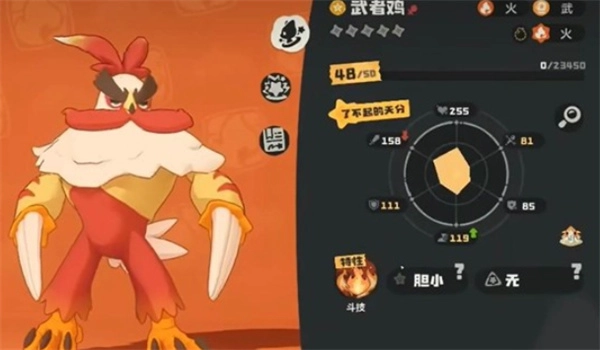 进化完成后,武者鸡定位为物理输出型宠物,以火系与武系技能为主要伤害来源。