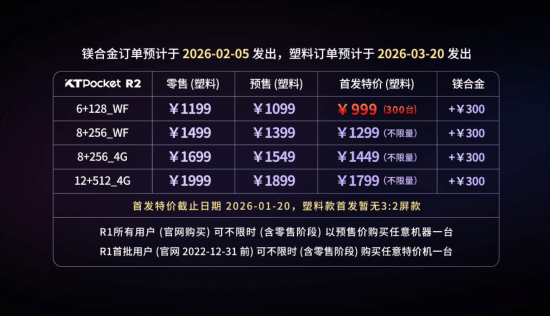 最后价格情况,KT Pocket R2的零售、预售及首发特价如下: