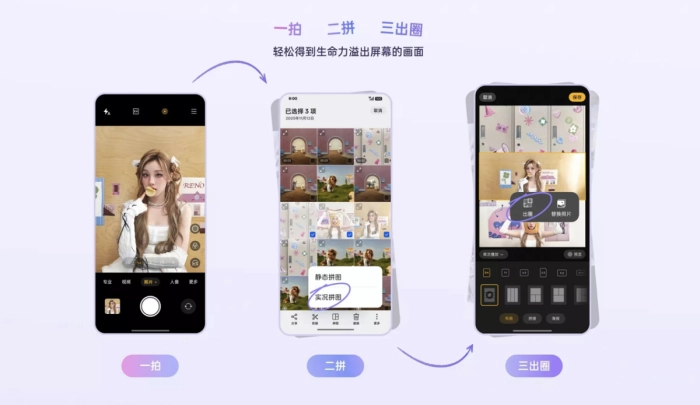 为提升节日期间影像记录的趣味性与仪式感,Reno15 系列围绕「实况拍摄」带来多项玩法升级。首先是主打创意表达的 「出圈实况拼图」,可智能分离人物或宠物主体,生成 4K 动态拼图,重点呈现神态与动作细节,让年味十足的烟火与场景更具表现力。同时,「AI 实况拼图」 支持从 2–9 张实况照片中自由组合,并提供多种边框样式,轻松制作富有动态感的新年祝福卡片,分享更具心意。在复杂光线与真实场景记录方面,「CCD 闪光实况」 针对暗光环境进行优化,即使在年会、守夜等灯光不足的场景中,也能拍出清晰且氛围感十足的画面;而 「前后同拍实况」 则可同时调用前后摄像头,在录制拜年视频时既记录自己,也捕捉亲友的即时反应,让祝福更生动、更有温度。此外,Reno15 系列还支持 4K 实况照片拍摄,分享流程更加快捷,并可跨生态与苹果设备实现便捷互传,进一步降低创作与分享的门槛。