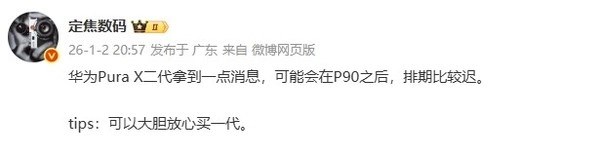 根据流出的信息,华为Pura 90系列预计将按原有节奏先行发布,而Pura X2的排期则相对靠后,有可能延期至2026年第二季度。此前亦有分析指出,Pura X2的发布时间点可能在2026年四月之后,整体上属于2026年上半年的发布规划。这一节奏打破了外界对于两款旗舰可能同步或接近发布的预期。