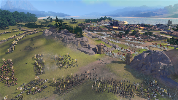“万人同屏”战斗作为《全战》系列的标志性元素,在本作实现了质的提升。战场面积相较前作大幅扩大,且有效利用率极高。部队入场位置、时间都严格参照大地图方位,且浅滩、雪地会降低行军速度并增加疲劳值,使得跨地图调度作战成为常态:开阔地形的正面冲锋、隘口的伏击战、攻坚战中的云梯攀爬与城墙攻防,让每一场战斗都充满变数与史诗感。还有各派系的特色兵种:如马腾派系的羌人袭击者拥有免疫疲劳的独特优势,可灵活穿插战场;吕布派系的陷阵死士与摧锋飞骑堪称攻坚利器;孙策派系的车下虎士则擅长正面防御。这些特质让各派系的战斗风格截然不同,使战术策略更加多元化。